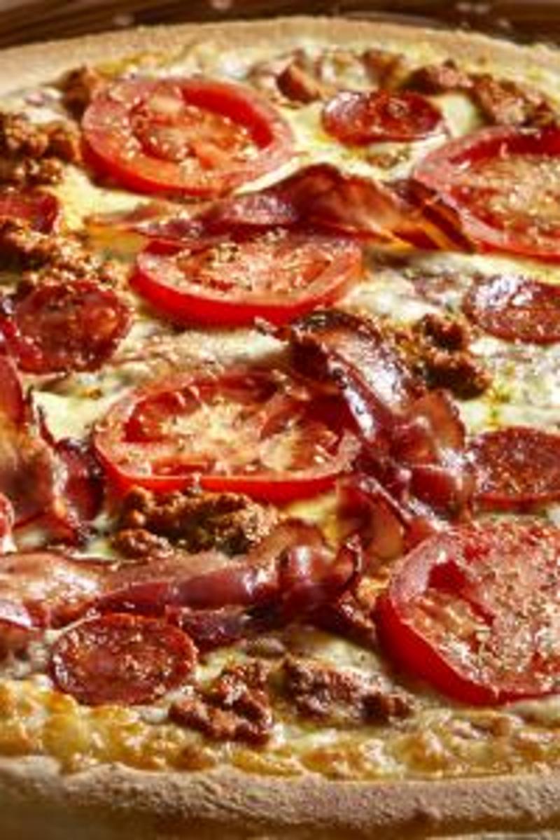 BBQ-kylling, bacon, pepperoni, tomat og oregano.